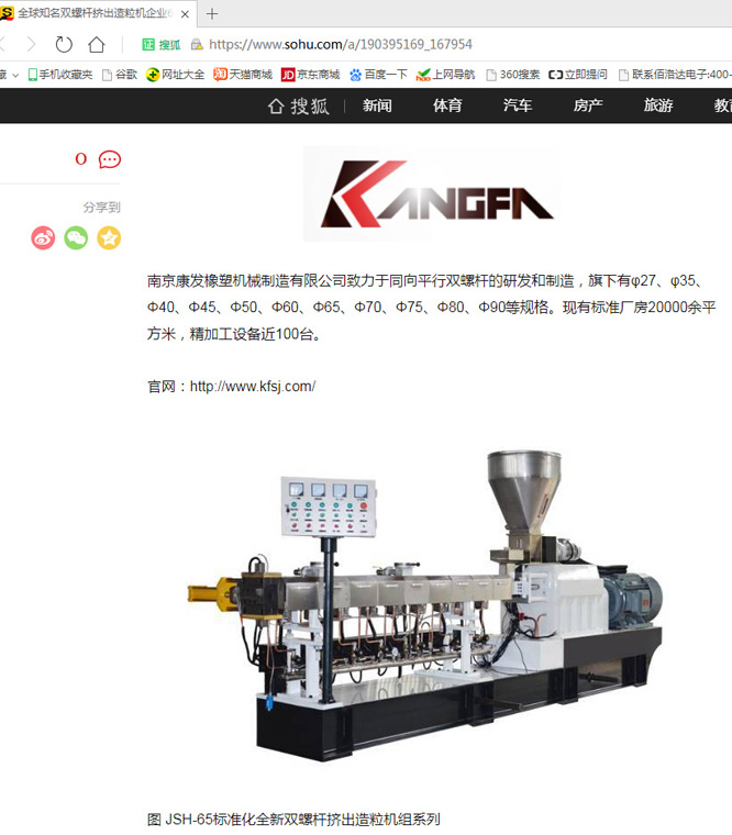 南京康發橡塑機械制造有限公司雙螺桿機擠出機及雙螺桿擠出造粒機榮獲全球知名雙螺桿擠出造粒機企業60強。